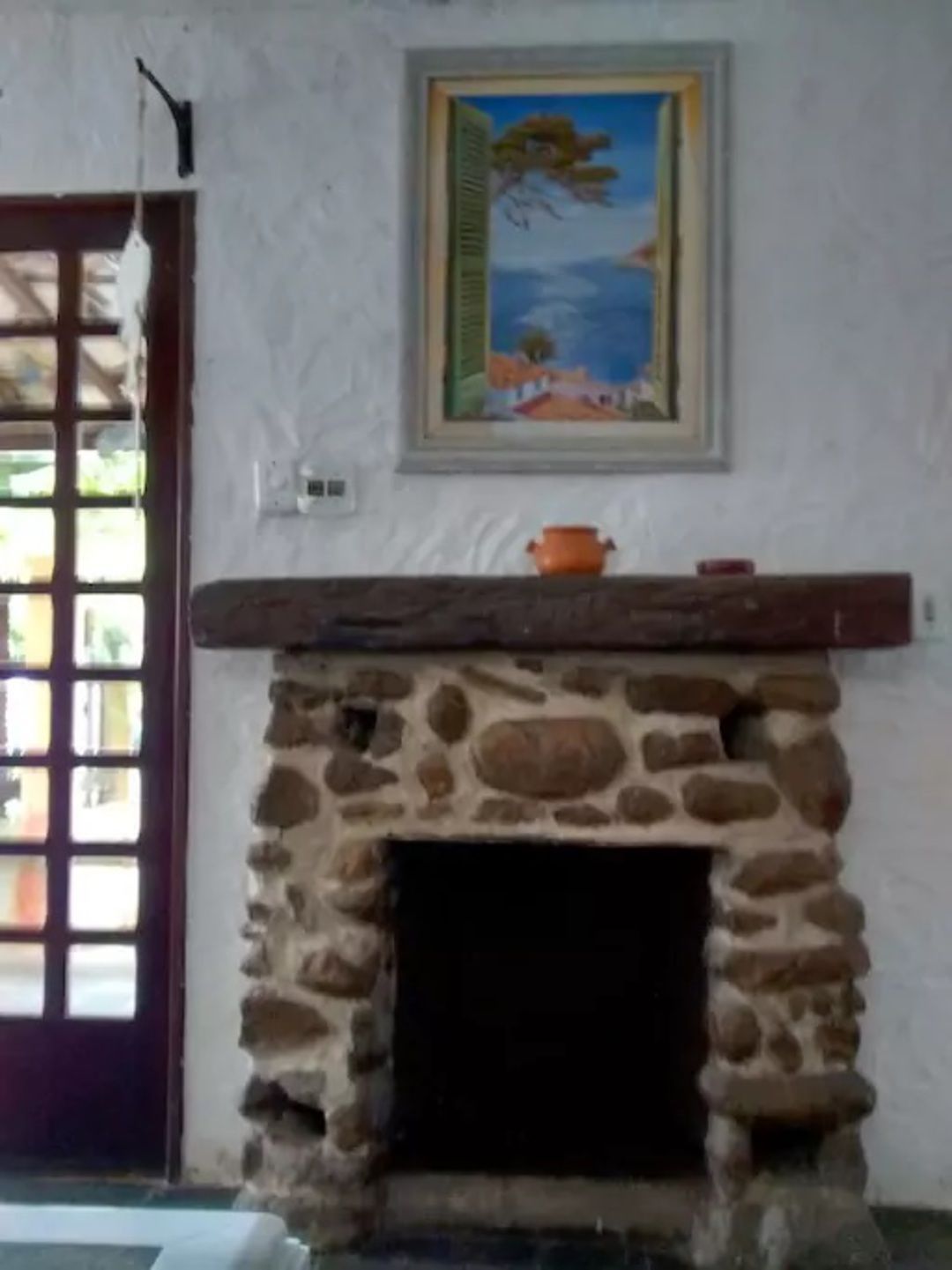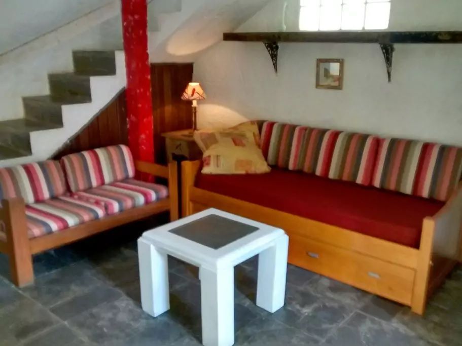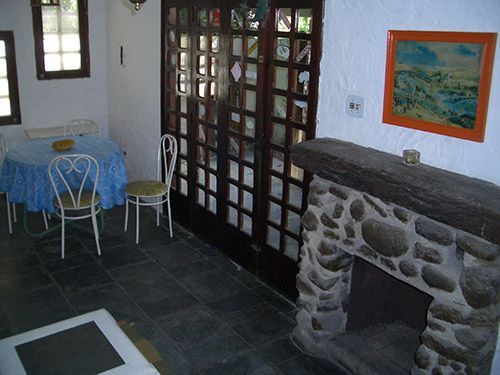 2 quartos, sendo 1 com cama de casal (+ 1 reserva de solteiro) e com ar condicionado, e outro quarto com 2 camas de solteiro e com ar condicionado/ banheiro / sala (com lareira) e 1 bi-cama/sofá / lavabo / cozinha / terraço / churrasqueira / estacionamento para 1 carro. (Para 5, no máximo 6 pessoas).