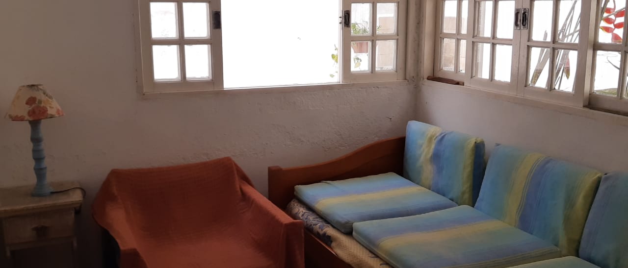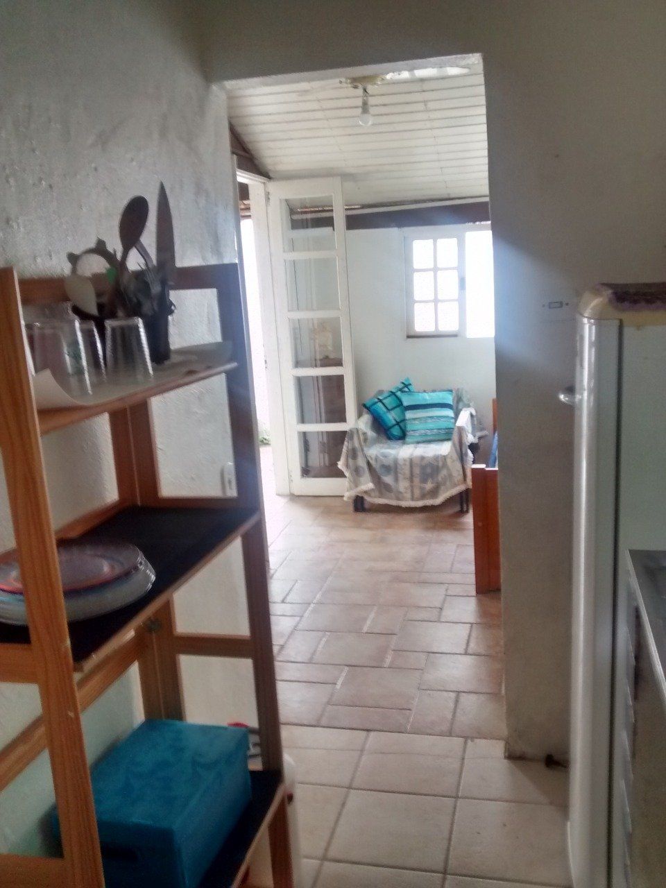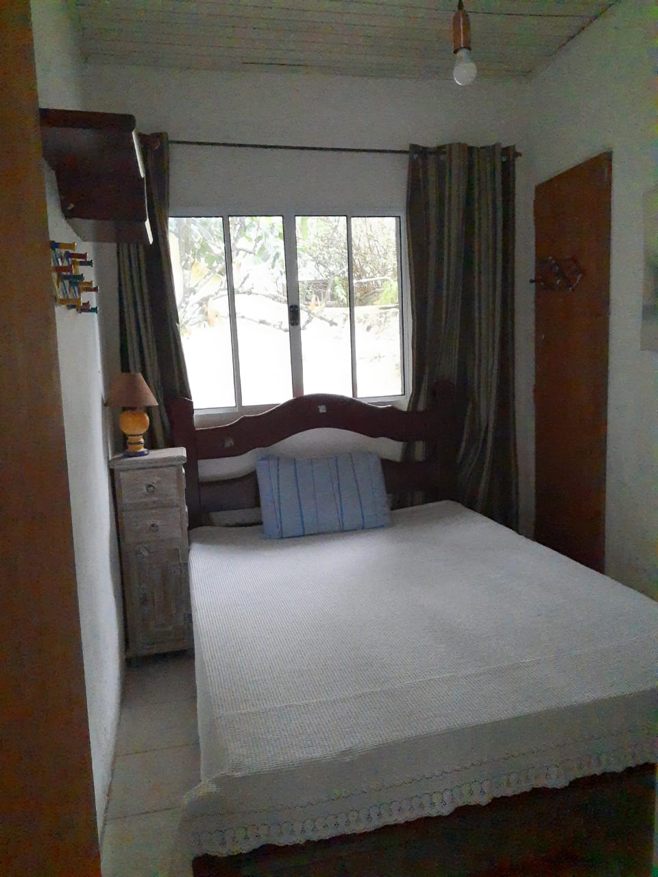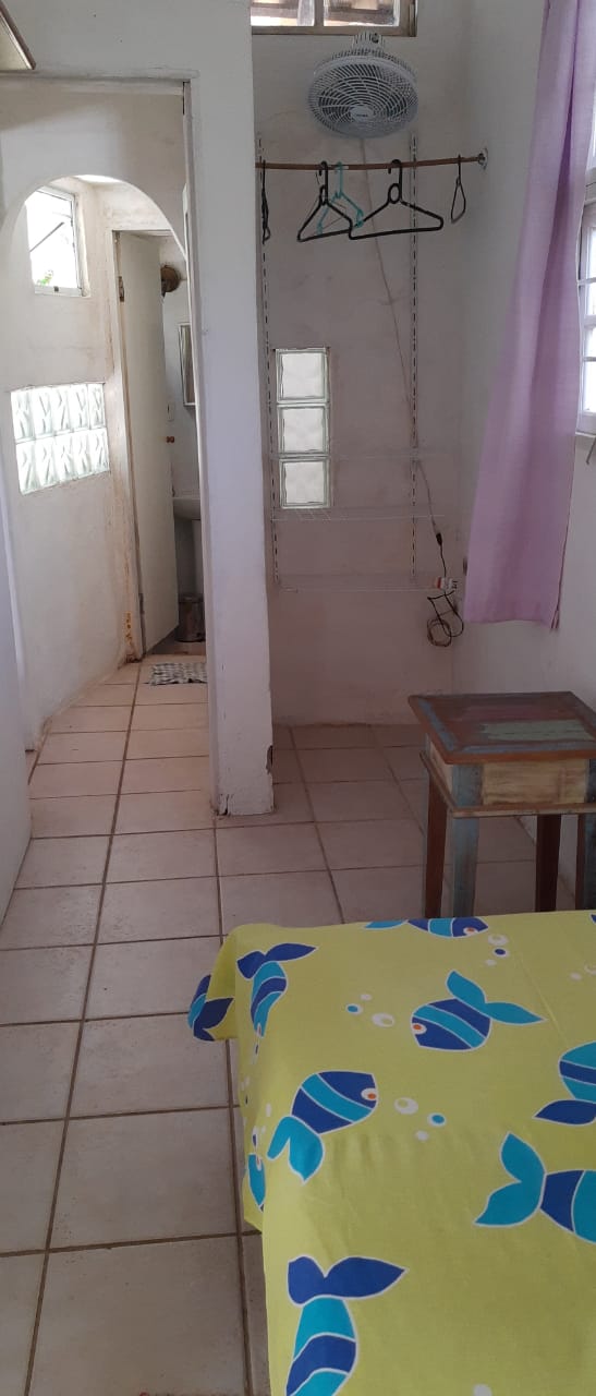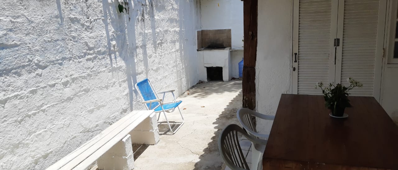 2 quartos, sendo 1 com cama de casal, e 1 com 1 cama de solteiro (c/1 colchão extra-cama rodinhas)/ sala (com bi-cama/sofá) / banheiro / cozinha / varanda / área externa / quintal / churrasqueira / estacionamento. (5 a 6 pessoas).