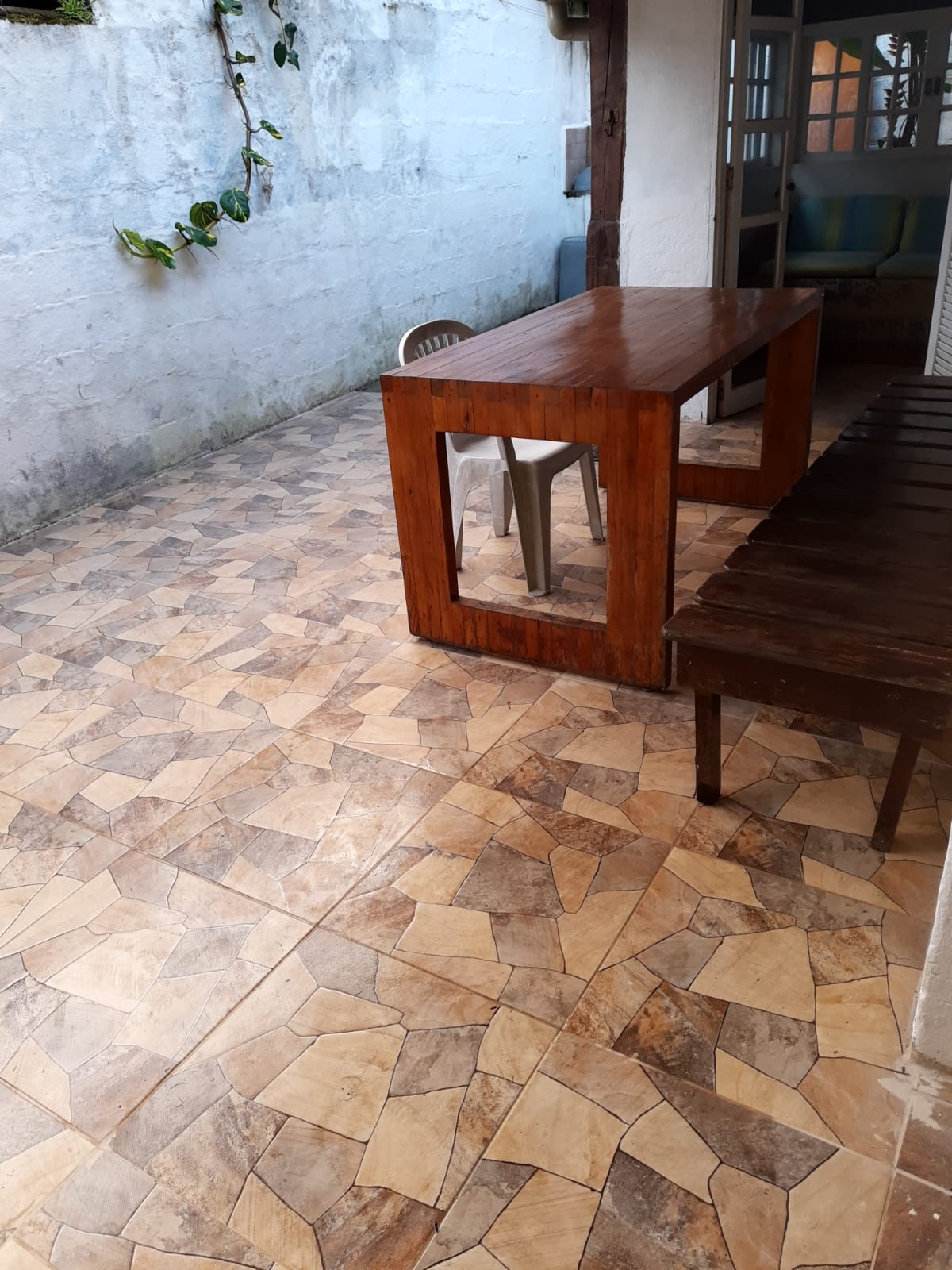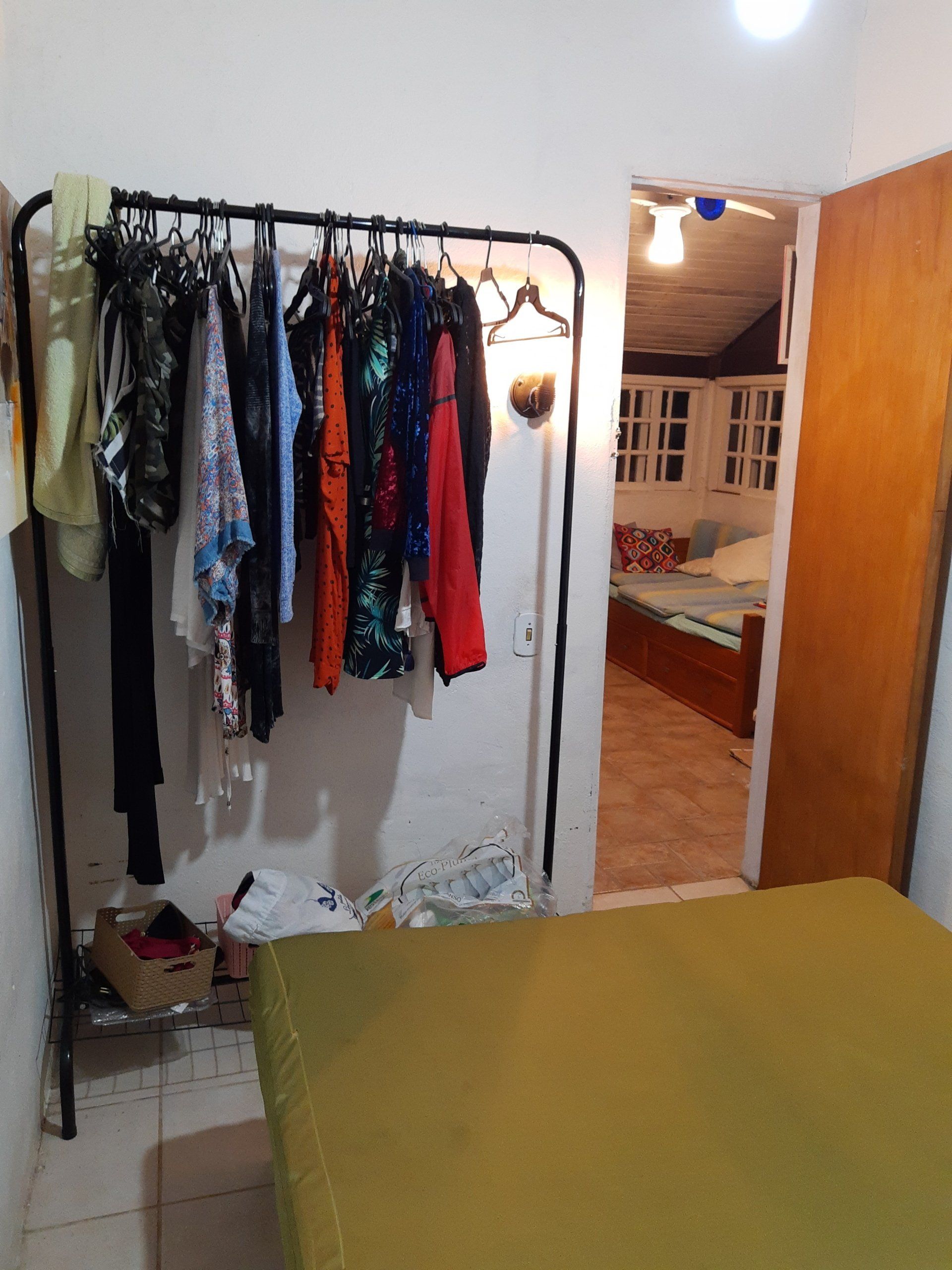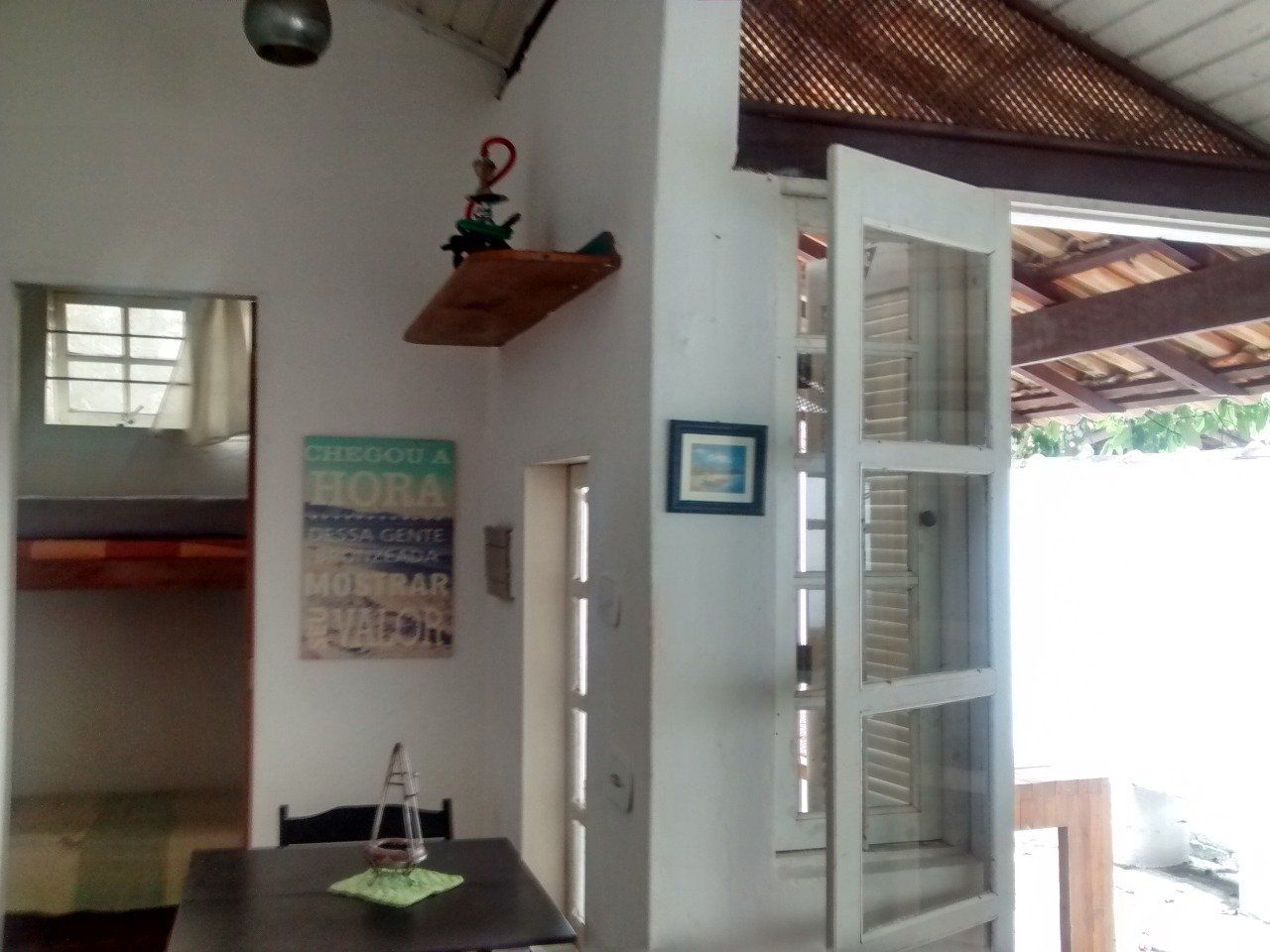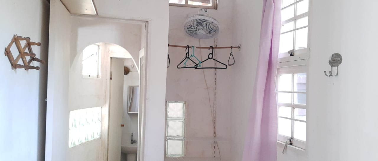 2 quartos, sendo 1 com cama de casal, e 1 com 1 cama de solteiro (c/1 colchão extra-cama rodinhas)/ sala (com bi-cama/sofá) / banheiro / cozinha / varanda / área externa / quintal / churrasqueira / estacionamento. (5 a 6 pessoas).